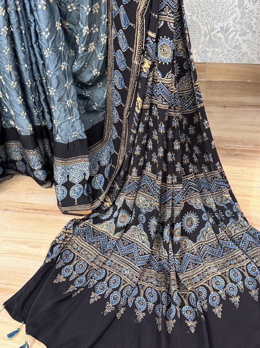 TARINI : BANDHEJ AJRAKH MODAL SILK SAREE