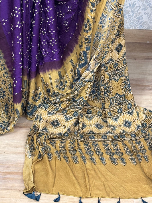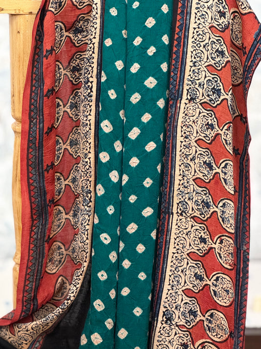 GAUTAMI : BANDHEJ AJRAKH MODAL SILK SAREE