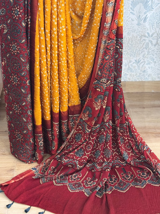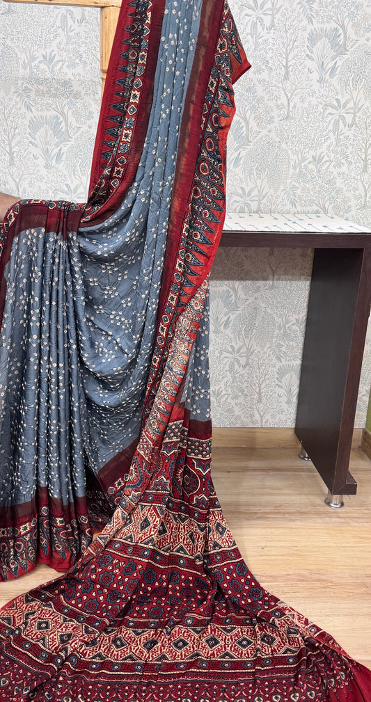 MOHA : BANDHEJ AJRAKH MODAL SILK SAREE