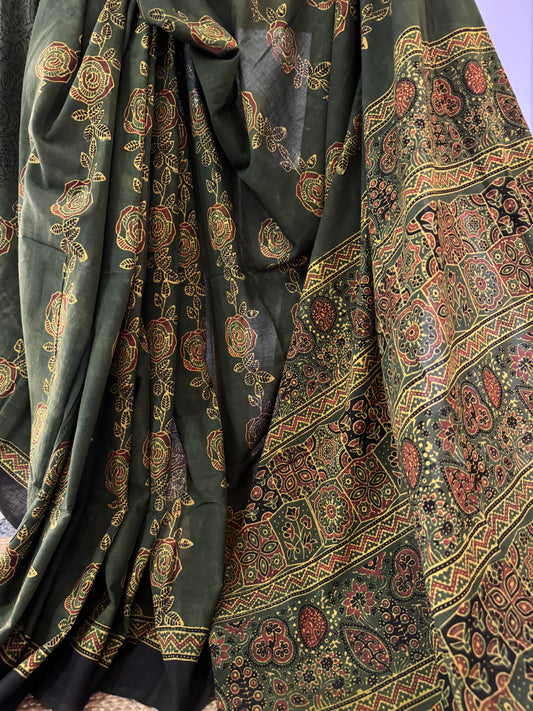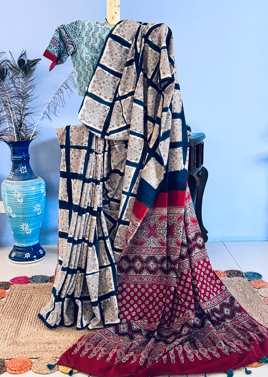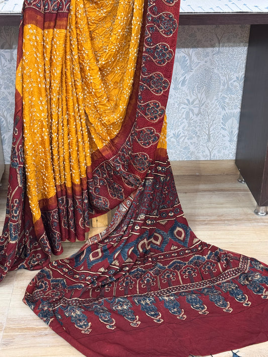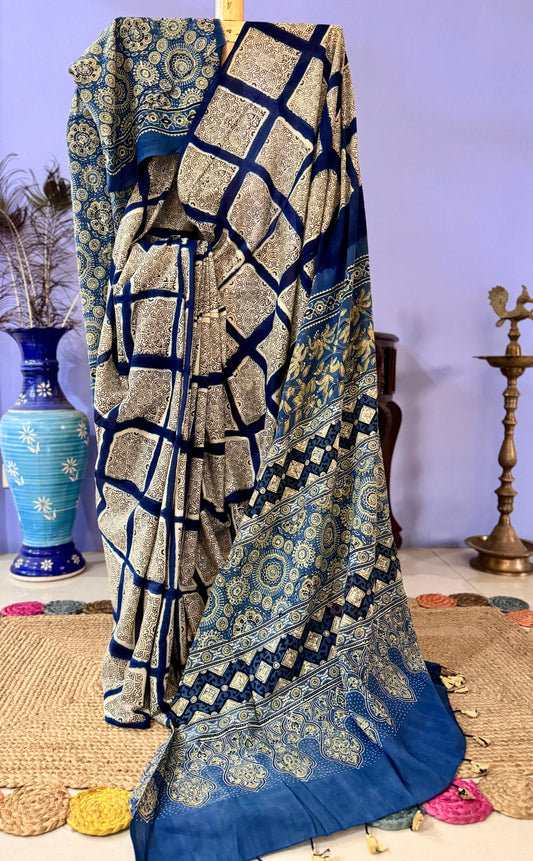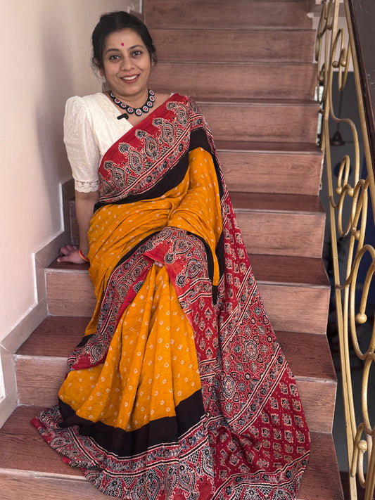 MAYAA : BANDHEJ AJRAKH MODAL SILK SAREE