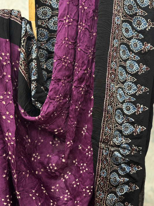ANANDI : BANDHEJ AJRAKH MODAL SILK SAREE