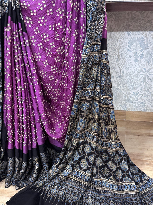 ANANDI : BANDHEJ AJRAKH MODAL SILK SAREE