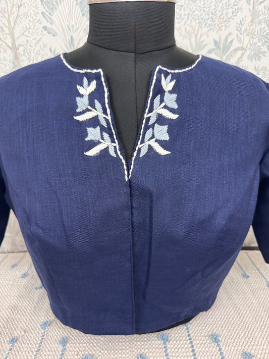 BLUE LOTUS : LINEN HAND EMBROIDERED BLOUSE