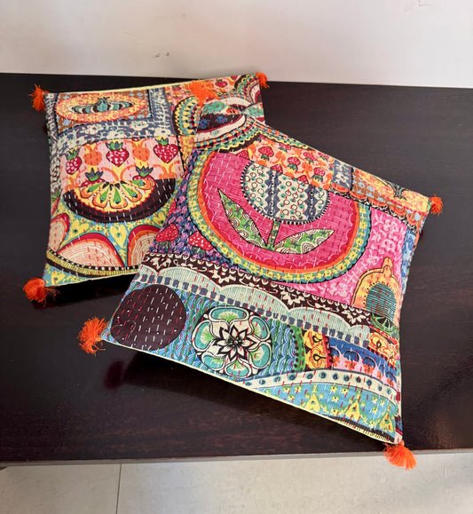 KANTHA MUTLICOLOUR : SET OF 2 COVERS