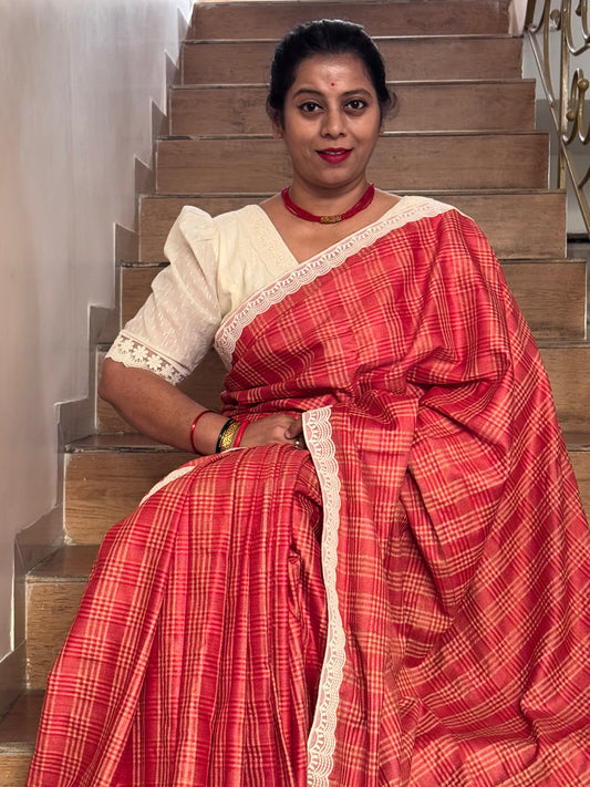 -25% OFFLALITA : CHECKERED TUSSAR SILK SAREE