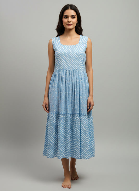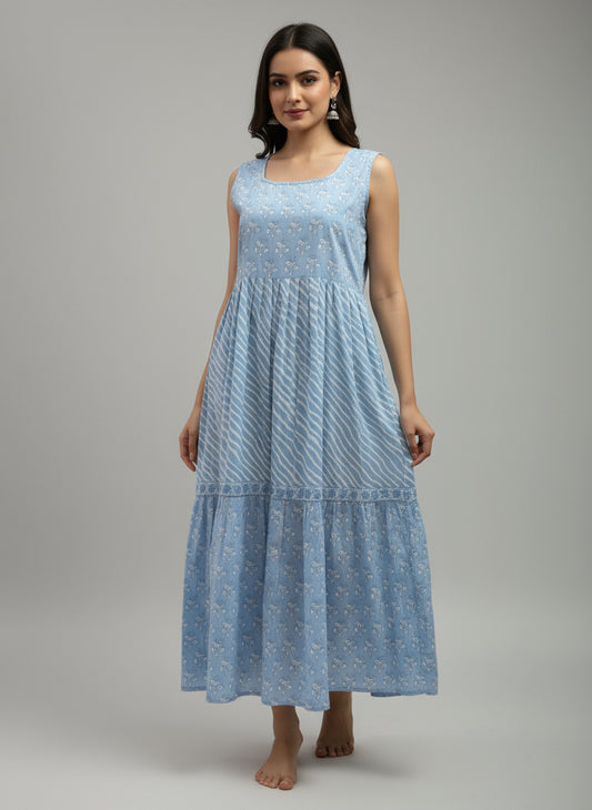 ETHNIC FUSION : BLOCK PRINTED FLORAL DRESS