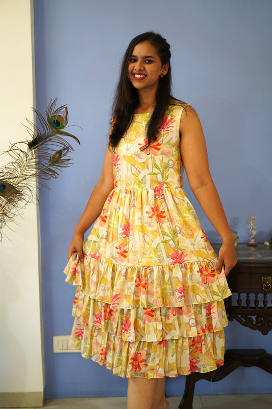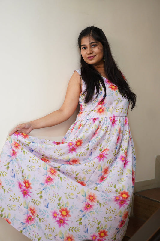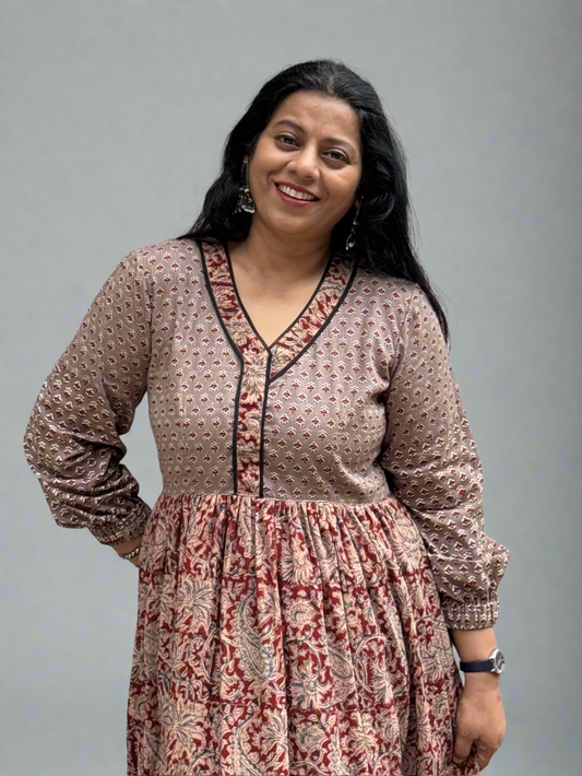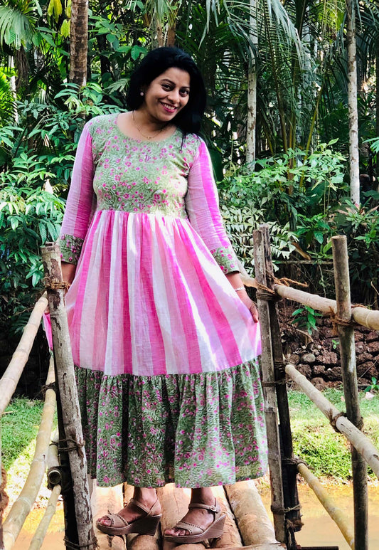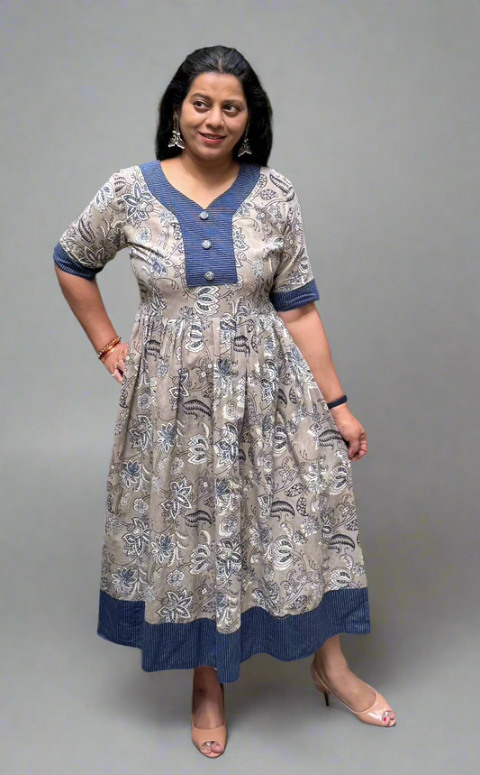 GREESHMA : HAND-BLOCK PRINTED FLORAL DRESS