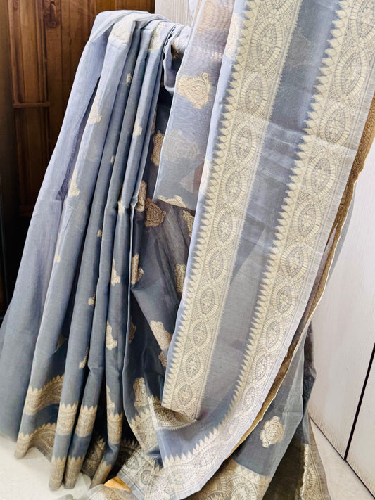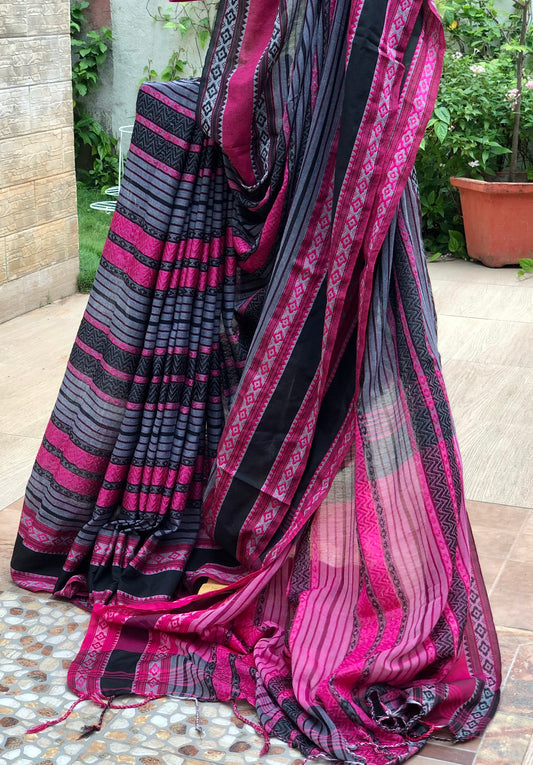 SHALMALI :GREY AND PINKWOVEN COTTON SAREE