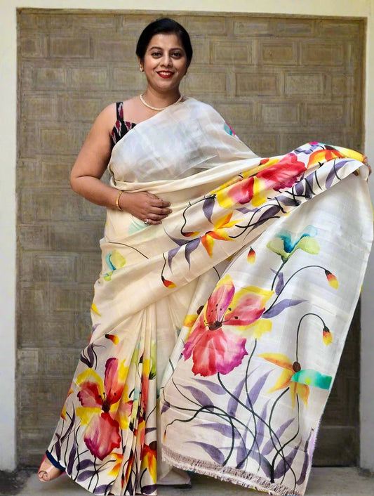 SHUBHRA : HAND-PAINTED SILK SAREE