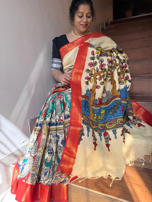 KAISHORI : SRIKALAHASTI PEN KALAMKARI SAREE