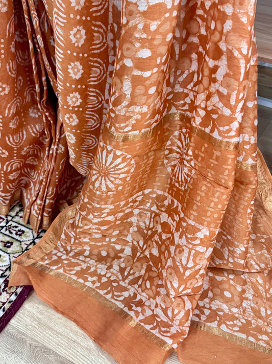 RAKSHA : HAND BLOCK PRINTED MAHESHWARI SILK COTTON SAREE