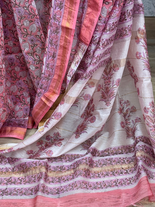 PHOOLPARNA : HAND BLOCK PRINTED MAHESHWARI SILK COTTON SAREE