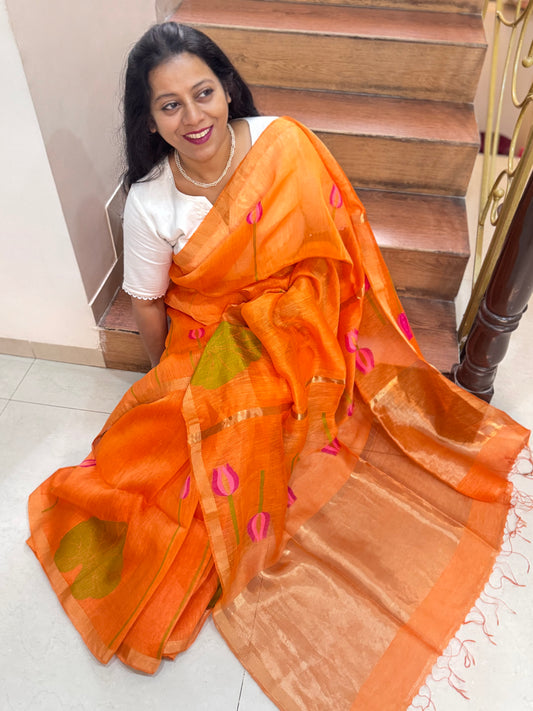 RESHMI : SILK LINEN SAREE WITH LOTUS