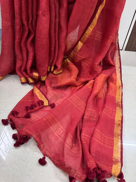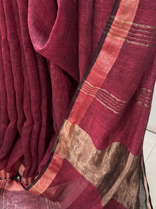 LAKSHMI : SILK LINEN SAREE WITH LOTUS