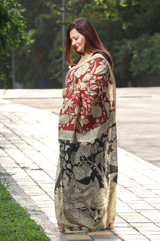 MEDINI: SRIKALAHASTI PEN KALAMKARI SAREE