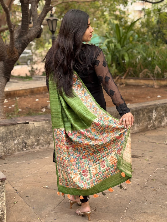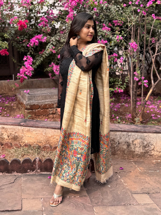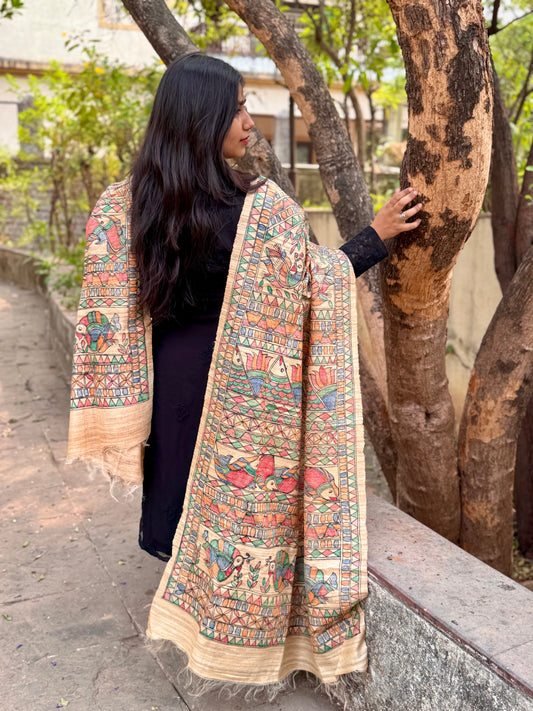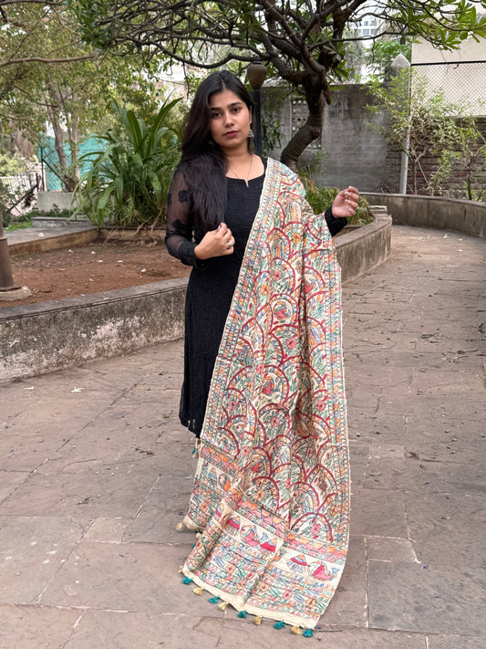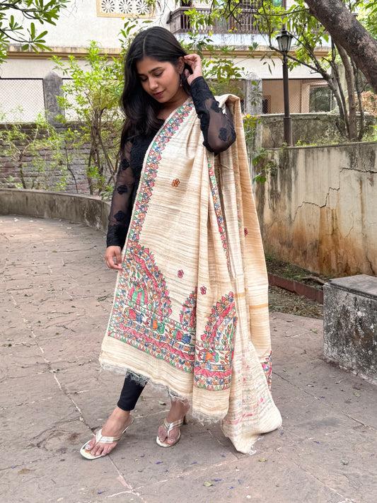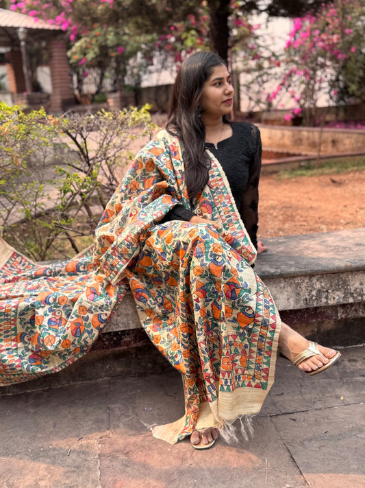 TUSSAR GICHA HAND PAINTED MADHUBANI DUPATTA