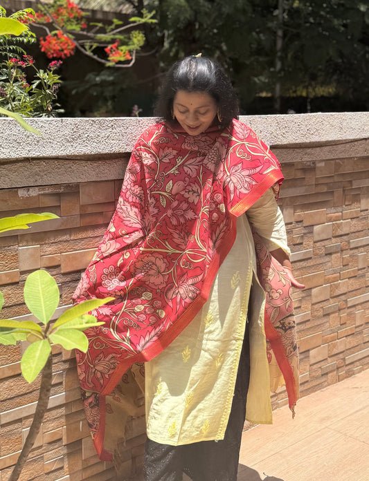 PEN KALAMKARI BANGALORE SILK DUPATTA
