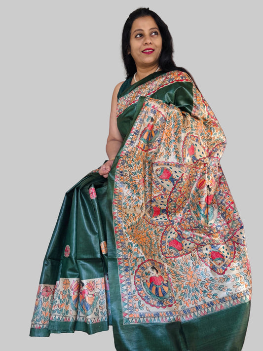 ANIKA : TUSSAR SILK MADHUBANI SAREE
