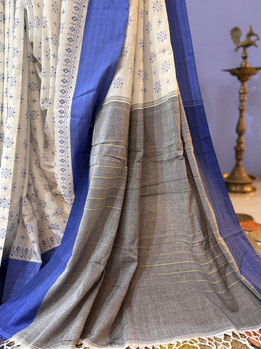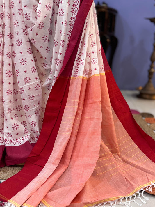 SARASWATI : SILK LINEN SAREE WITH LOTUS
