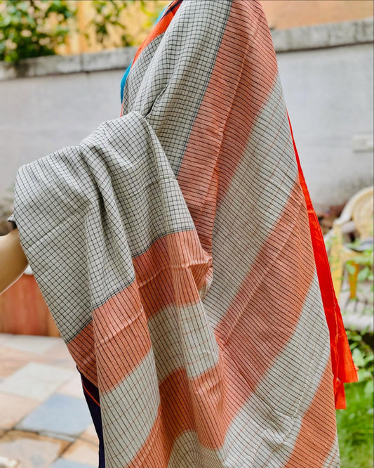 HANSINI : HANDLOOM ILKAL VISCOSE-COTTON SAREE WITH PURE RESHAM PALLU