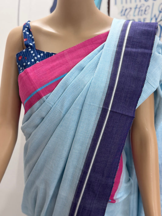 NEERJA : LIGHT BLUE PATTEDA ANCHU SAREE