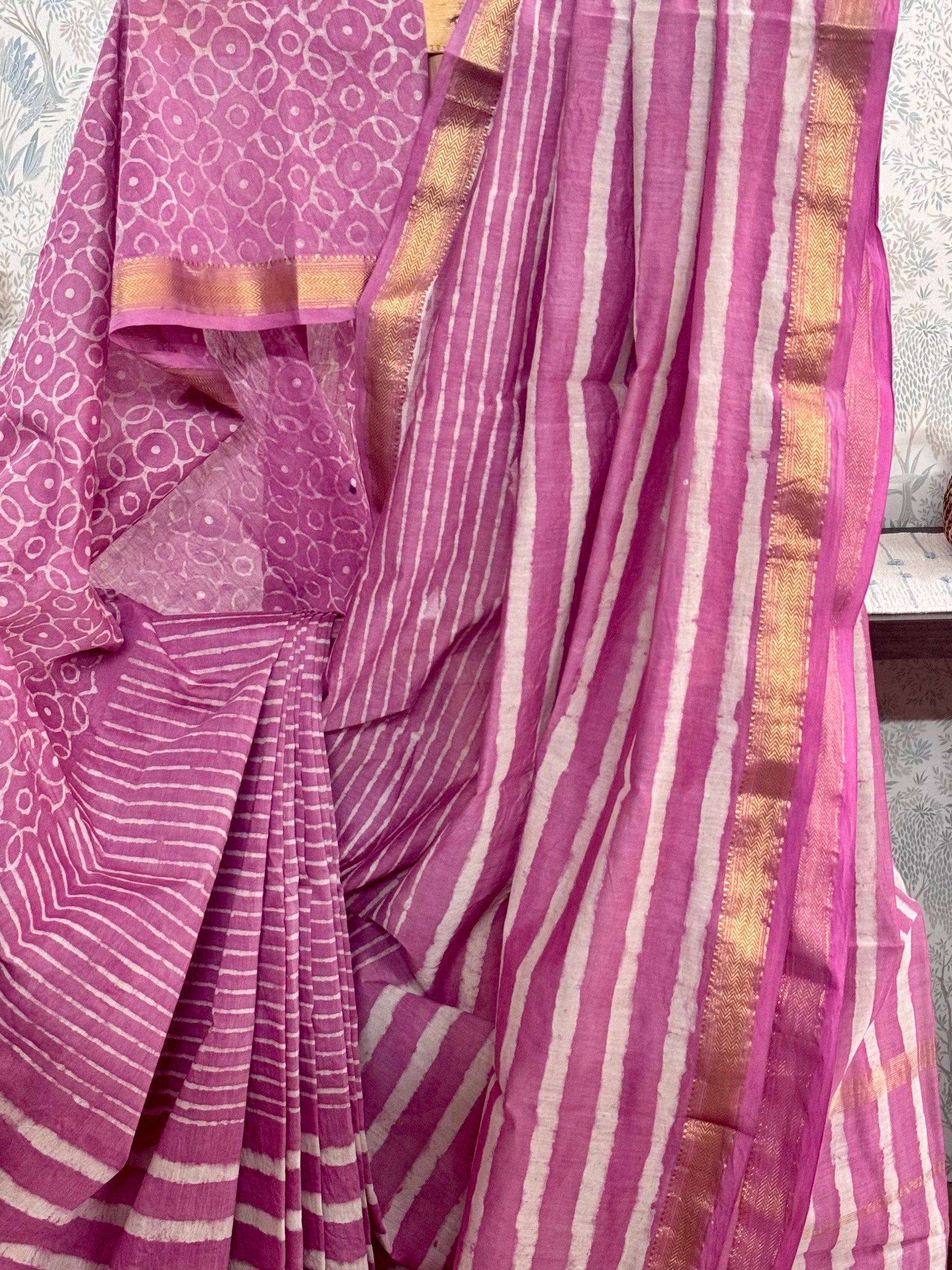 URMEELA : HAND BLOCK PRINTED MAHESHWARI SILK COTTON SAREE